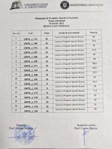 Rezultate olimpiada de Pregătire Sportivă Teoretică – faza județeană martie 18, 2023 Anunț contestații: Perioada pentru depunerea contestațiilor: 19.03.2023, intervalul orar: 9,00 – 13,00 la sediul Liceului cu Program Sportiv Brasov.